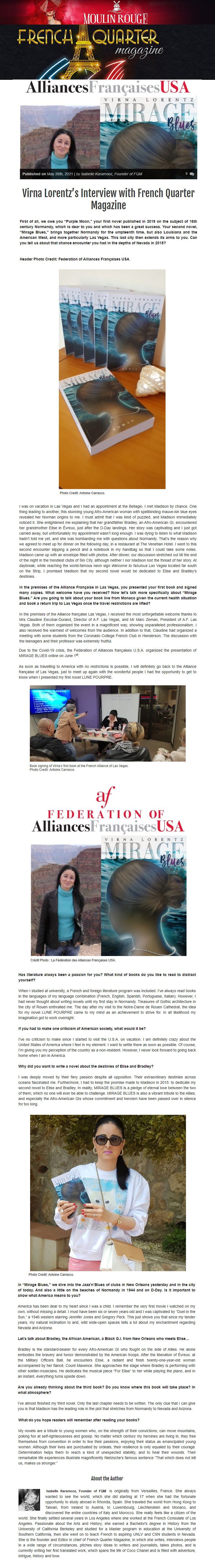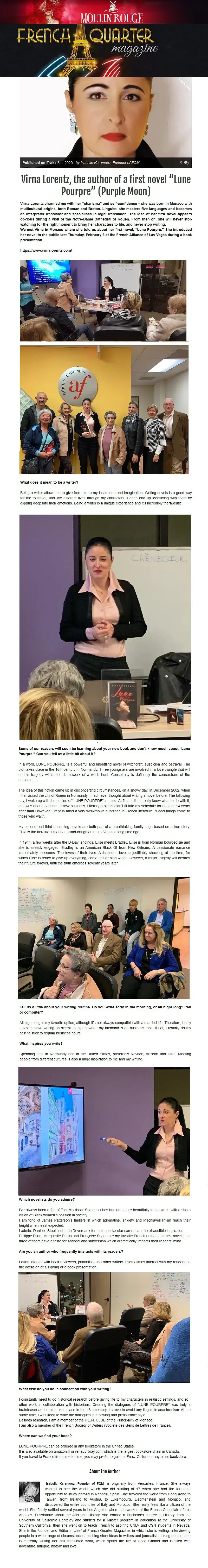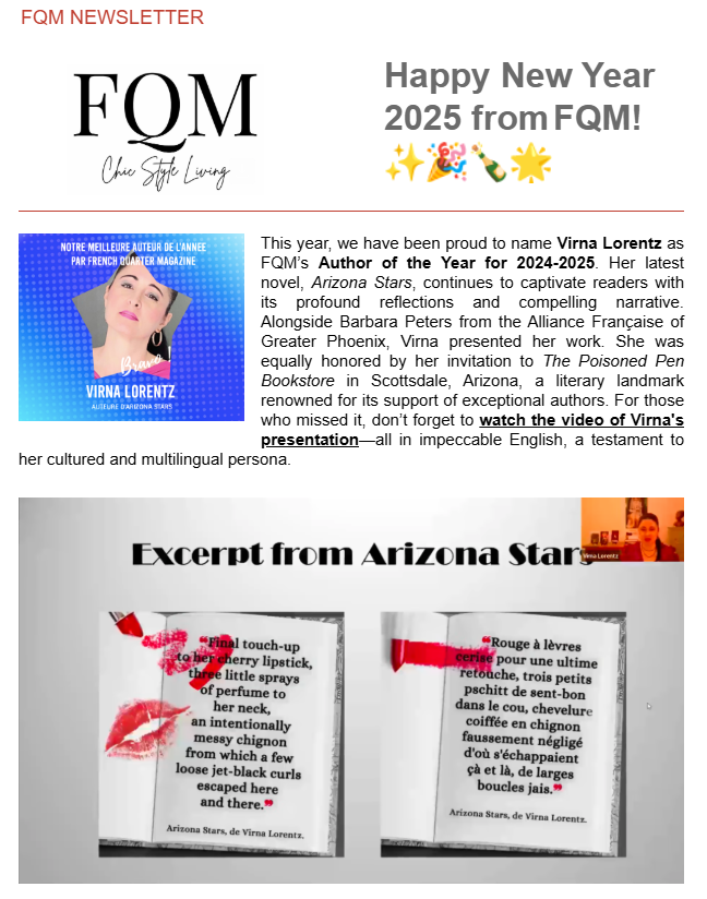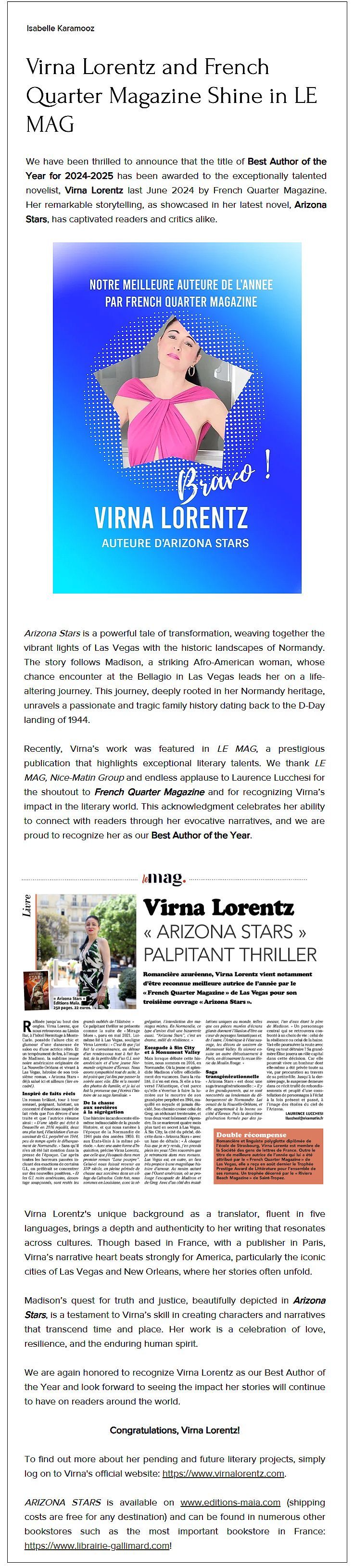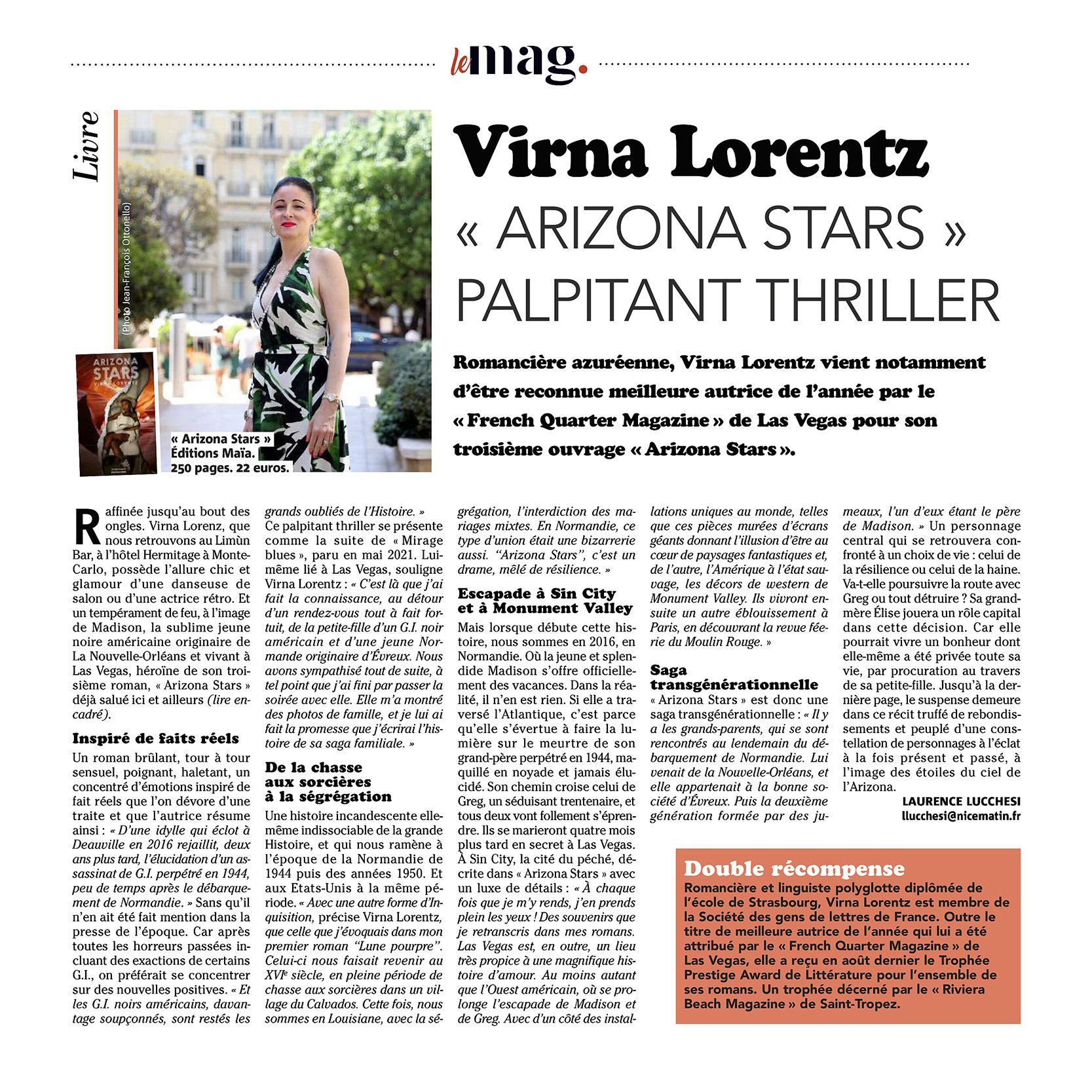 Riviera Beach Magazine Interview, Virna Lorentz & Yann Bernard, Arizona Stars Roman Novelist