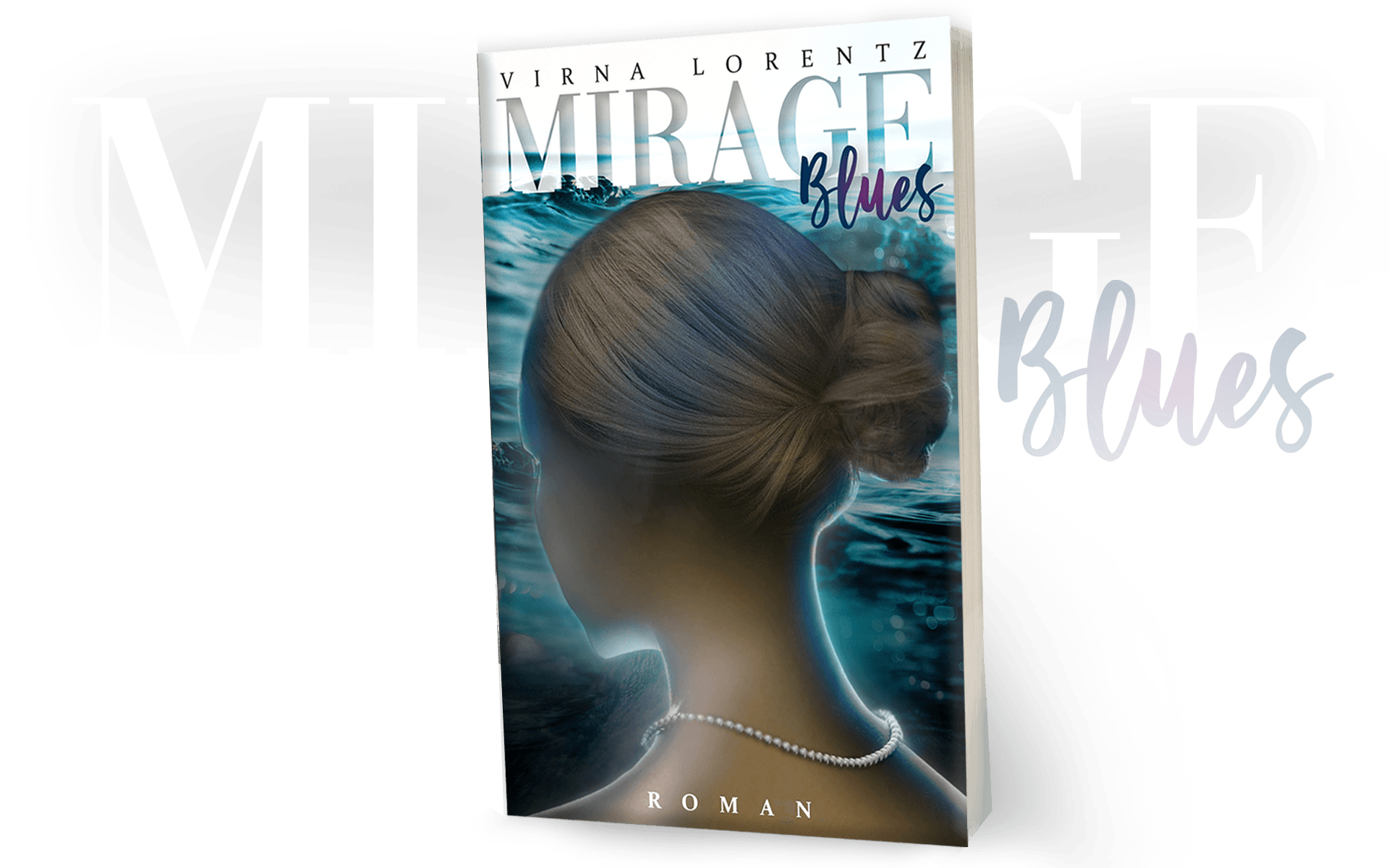 Small tote bag / shopping bag / beach bag crafted from Oeko-Tex certified cotton and jute, featuring the cover of the famous saga MIRAGE BLUES by VIRNA LORENTZ.